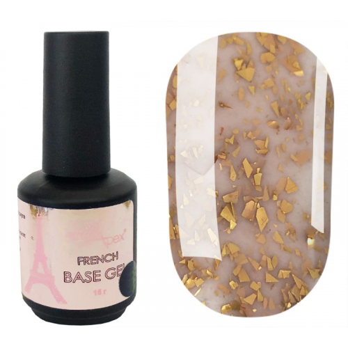 NailApex French Base FRB13 камуфлююча база (бежева із золотою поталлю), 15 мл